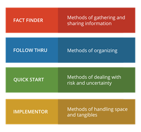 Here was a tool that, unlike most other assessments, measured our natural, instinctive way of taking action. It showed us thateach person has a unique MO (Method of Operation) orcombination of four Action Modes®:
